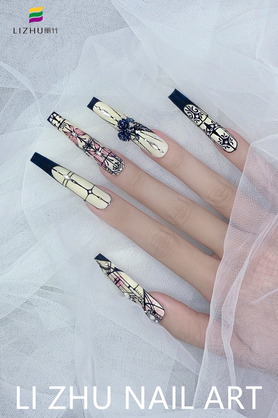 南寧美甲設計(麗竹學校美甲專業(yè))作品---手繪花窗美甲(二)