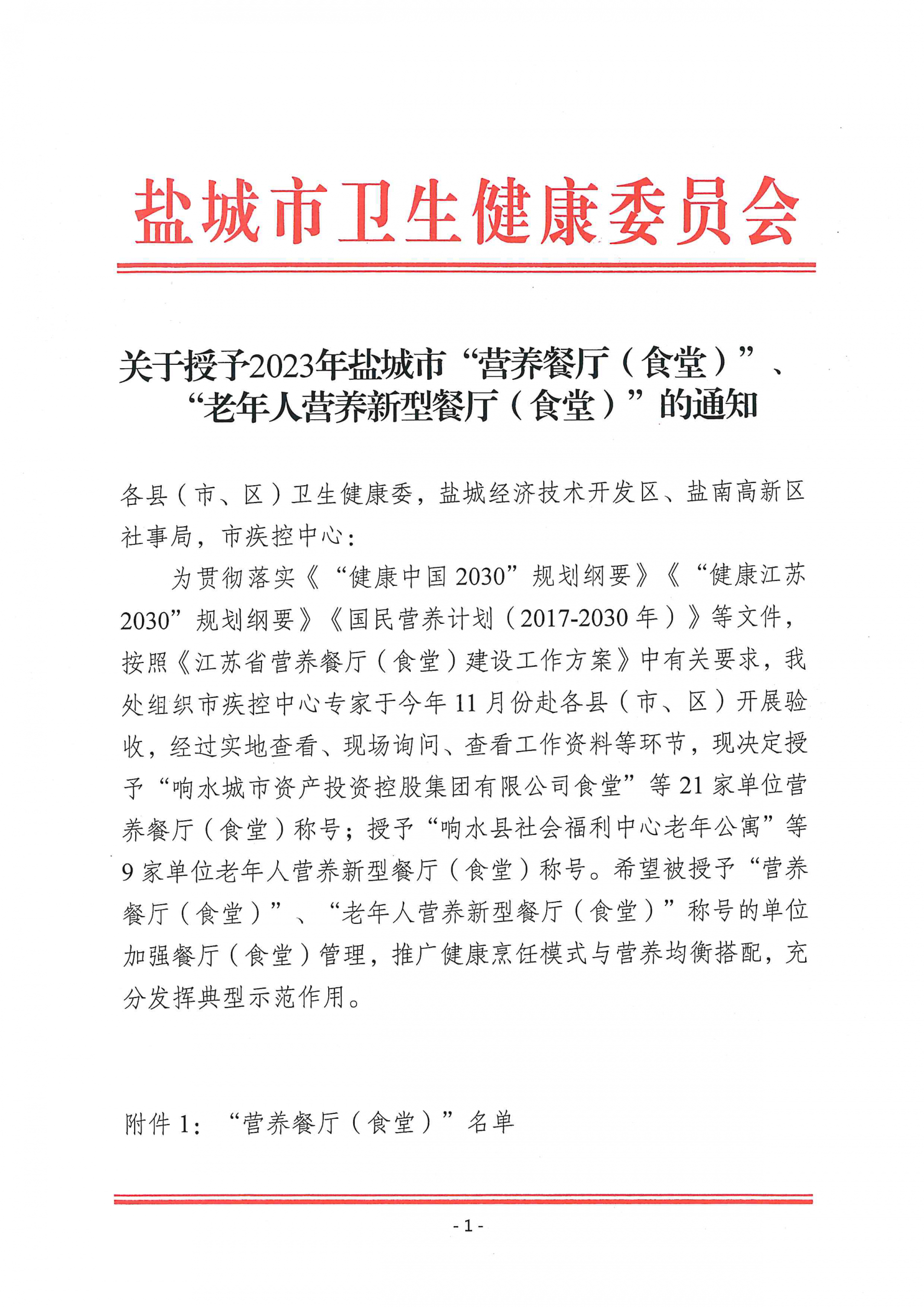 近日,市衛(wèi)生健康委員會印發(fā)《關(guān)于授子2023年鹽城市“營養(yǎng)餐廳(食堂)”“老年人營養(yǎng)新型餐廳(食堂)”的通知》,鹽城市海興集團食堂被授予“營養(yǎng)餐廳(食堂)”榮譽稱號。2023-12-19 -