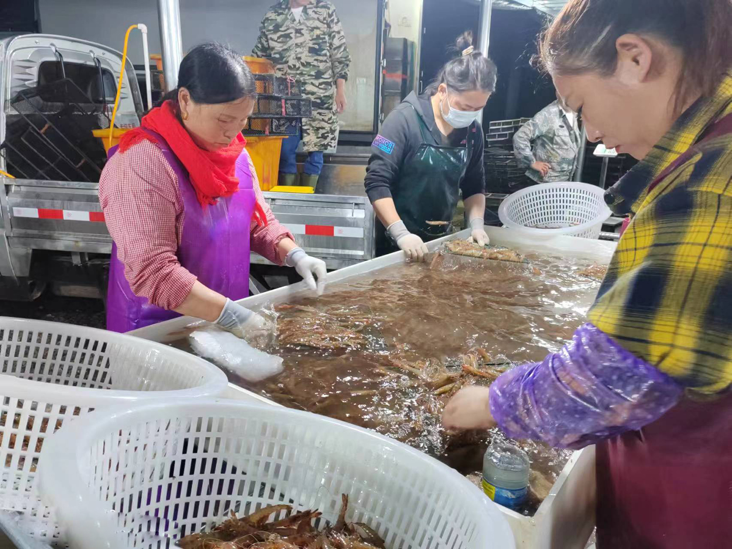 六月的初夏,灌東鹽場(chǎng)迎來(lái)了一年中第一波豐收季。在三圩養(yǎng)殖區(qū)的收購(gòu)現(xiàn)場(chǎng),忙碌的養(yǎng)殖戶(hù)將一筐又一筐的斑節(jié)蝦運(yùn)送到集中收購(gòu)點(diǎn)。夜幕下,工人們正熟練的分揀、打包。豐收的斑節(jié)蝦吸引了大批的客商前來(lái)收購(gòu),一筐筐剛上岸的蝦就被客商搶購(gòu)一空,被運(yùn)往全國(guó)各地市場(chǎng)進(jìn)行銷(xiāo)售,2萬(wàn)多畝的養(yǎng)殖塘口內(nèi)車(chē)水馬龍,一派繁忙景象。2023-06-21 -