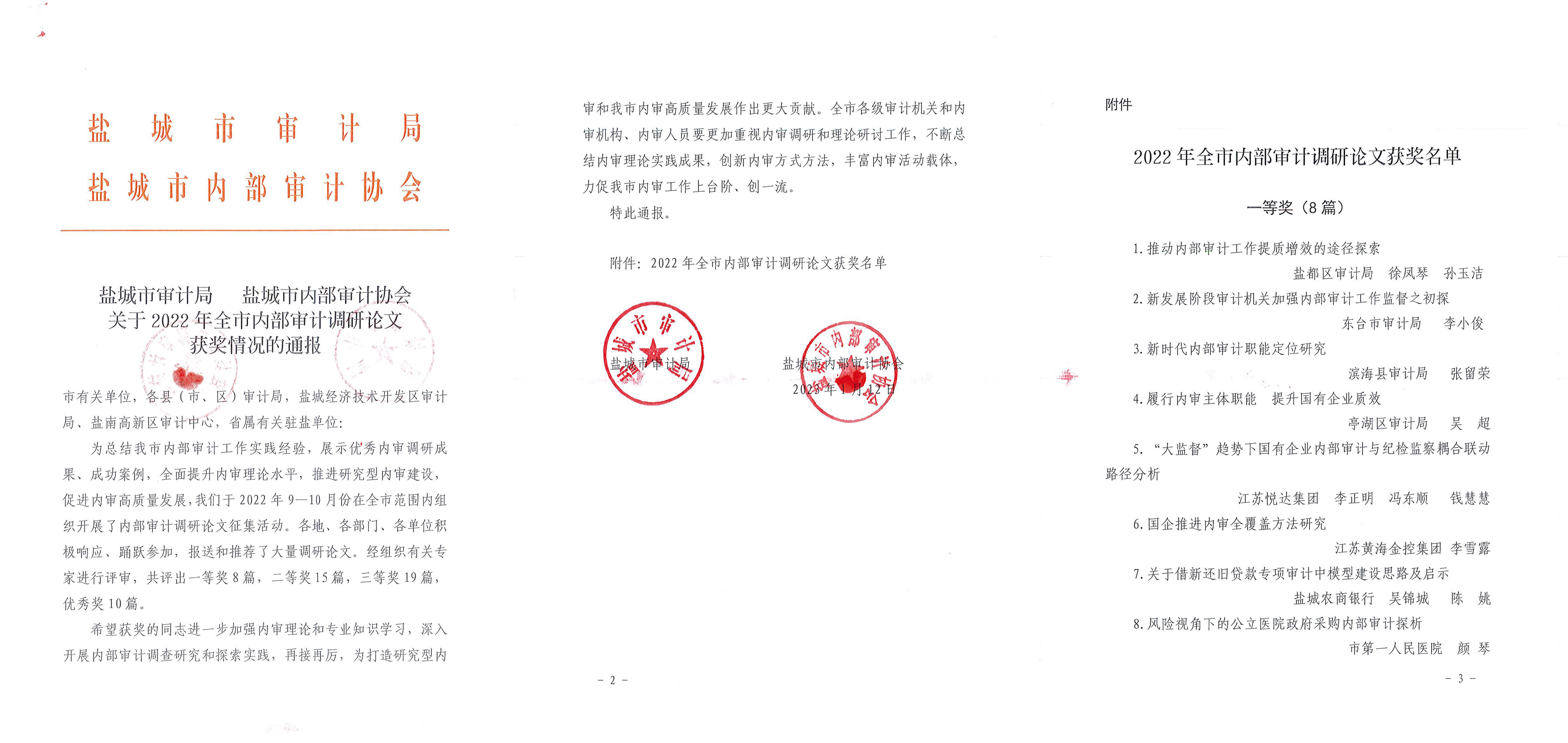 近日,鹽城市審計(jì)局、鹽城市內(nèi)部審計(jì)協(xié)會(huì)在全市范圍內(nèi)組織開展了內(nèi)部審計(jì)調(diào)研論文征集活動(dòng)。集團(tuán)審計(jì)部積極響應(yīng)該項(xiàng)活動(dòng),部門全體員工積極備稿,經(jīng)初選、終選確定三人投稿。1月12023-01-13