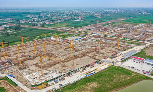 9月7日上午,在濱海港港城保障房項(xiàng)目建設(shè)現(xiàn)場(chǎng),塔吊林立,一派繁忙景象。2021-09-10 -