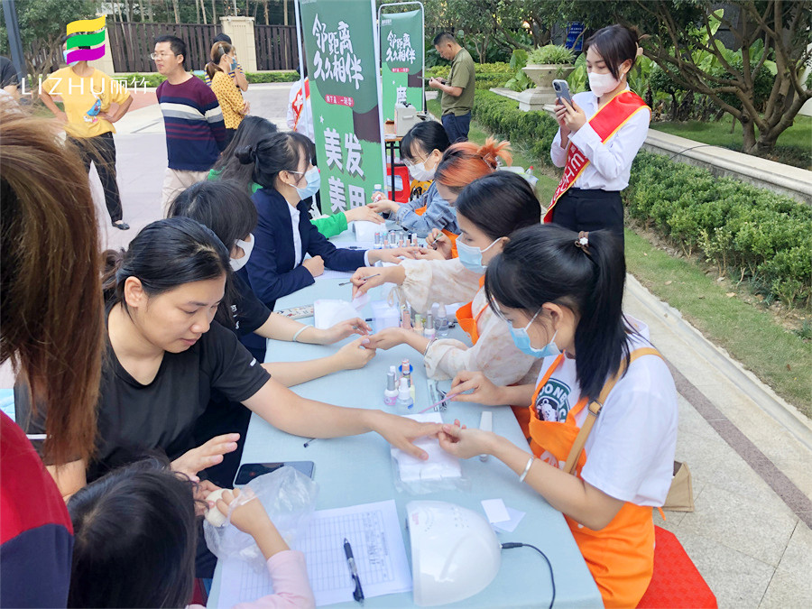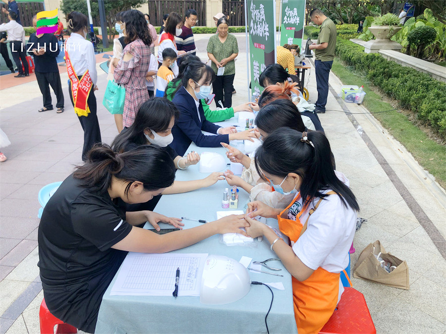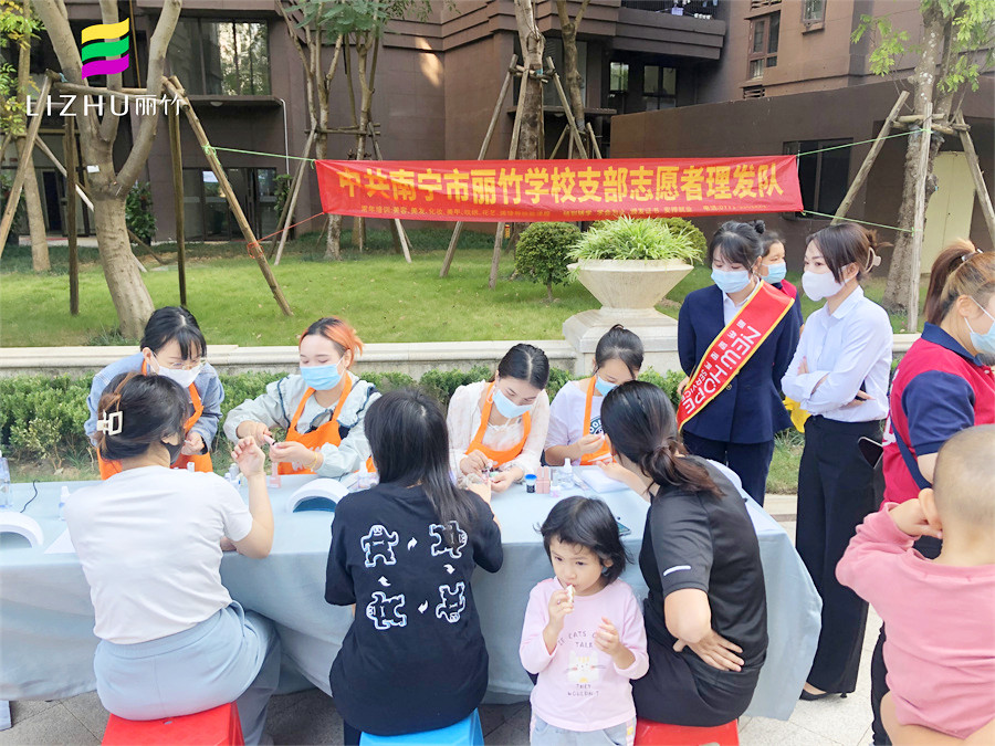 美甲外出實操、南寧美甲公益活動分享:10中旬的南寧,早上已經(jīng)感到很明顯的涼意,但在新希望社區(qū)的花園廣場上,卻熱火朝天,人聲鼎沸,仿佛入秋的涼意從未在這里停留。而在這里,南寧美甲學(xué)校-麗竹學(xué)校美甲專業(yè)在黨支部的帶領(lǐng)下,正在為居民們進(jìn)行美甲公益活動。