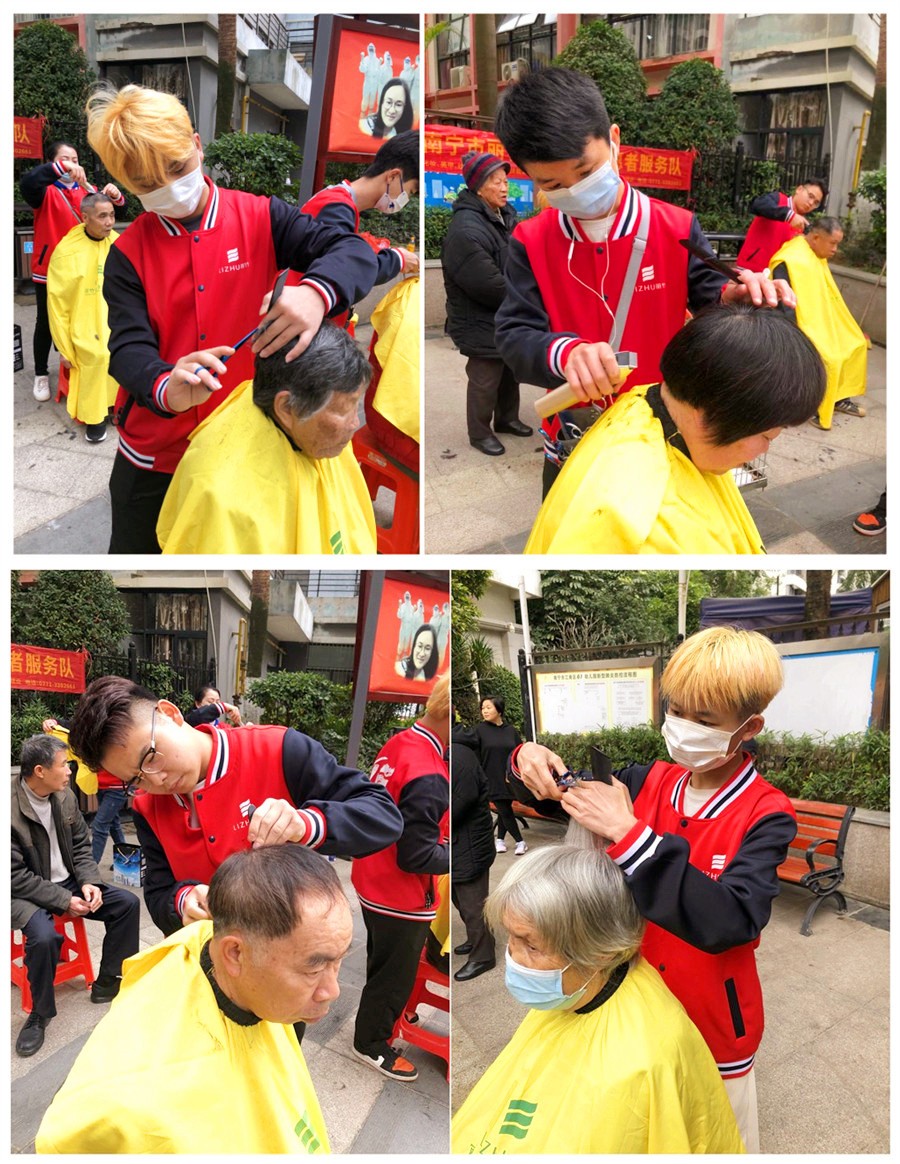 不一會,居民們就陸續(xù)從四面八方而來。學(xué)員們有序帶領(lǐng)居民們坐下后,便開始細(xì)心詢問大家的理發(fā)需求,之后理發(fā)工作便開始了!在學(xué)員們嫻熟的操作下,不會以一個(gè)清爽利落的發(fā)型便完成了。居民們看著自己的新發(fā)型,紛紛向?qū)W員們豎起了大拇指!