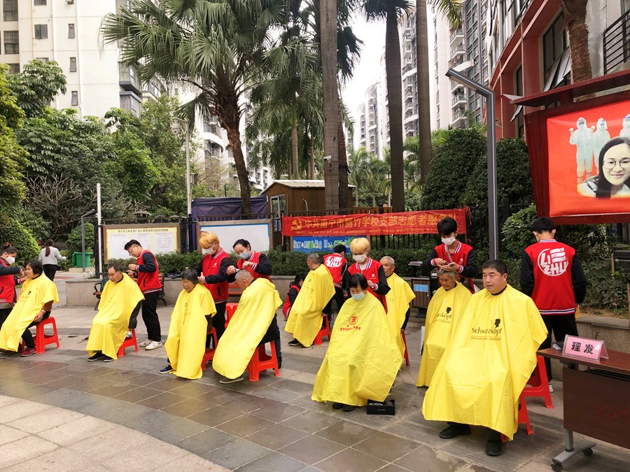 廣西南寧美發(fā)學(xué)校實(shí)踐教學(xué)、廣西美發(fā)學(xué)校實(shí)訓(xùn)分享:初春早上攜帶而來的涼意,讓人們不僅打了個(gè)寒顫。但在江南華府的中心花園里,廣西美發(fā)師培訓(xùn)學(xué)校-麗竹美發(fā)學(xué)校志愿者服務(wù)隊(duì)的學(xué)員們早已將凳子,美發(fā)工具擺放好,熱情高漲地等待居民的到來為他們提供免費(fèi)理發(fā)活動(dòng)!
