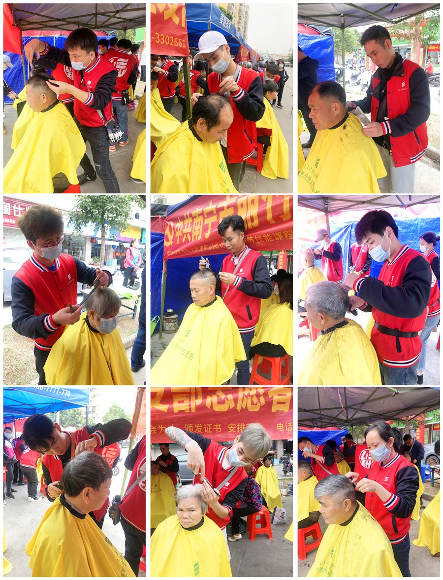 2023年3月31日,廣西美發(fā)師培訓(xùn)班到鑫利華小區(qū)為居民進行公益理發(fā)